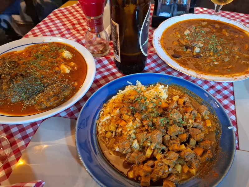 It is a thick layered stew, prepared from different types of meat and vegetables such as cabbage, potatoes, carrots, onions, tomatoes and peppers. The result is a dish with a rich taste, melting meat and the vegetables absorb all the aromas, creating a deep, homely and fragrant meal reminiscent of ancient times.